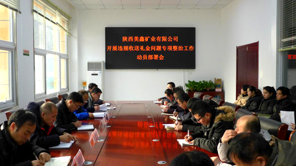 1月4午,美鑫礦業(yè)公司召開專題會(huì)議,傳達(dá)貫徹陜西美鑫產(chǎn)業(yè)投資有限公司“集中開展違規(guī)收送禮金問題專項(xiàng)整治工作動(dòng)員部署會(huì)”會(huì)議精神。公司黨政班子成員、部門負(fù)責(zé)人、全體黨員及重要崗位管理人員共三十余人參加了會(huì)議。會(huì)議由礦業(yè)公司黨支部書記、總經(jīng)理郭百強(qiáng)同志主持。