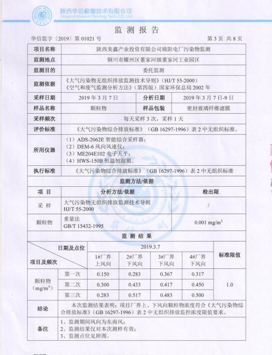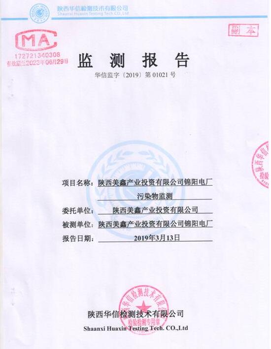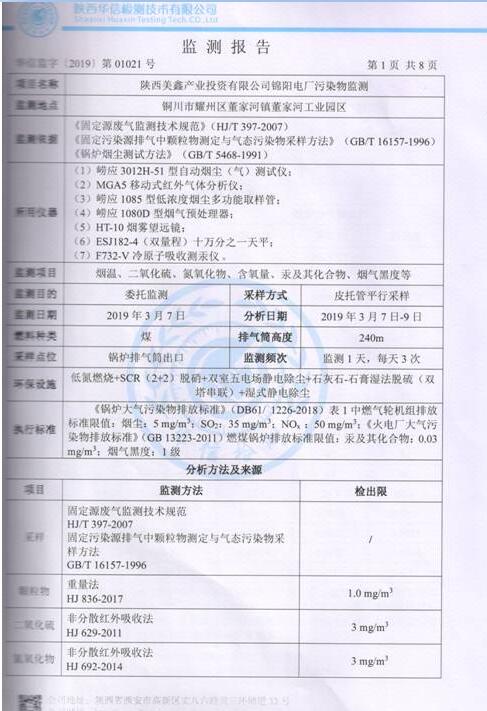陜西美鑫產(chǎn)業(yè)投資有限公司錦陽(yáng)電廠2×350MW機(jī)組2019年1季度自行監(jiān)測(cè)如下: