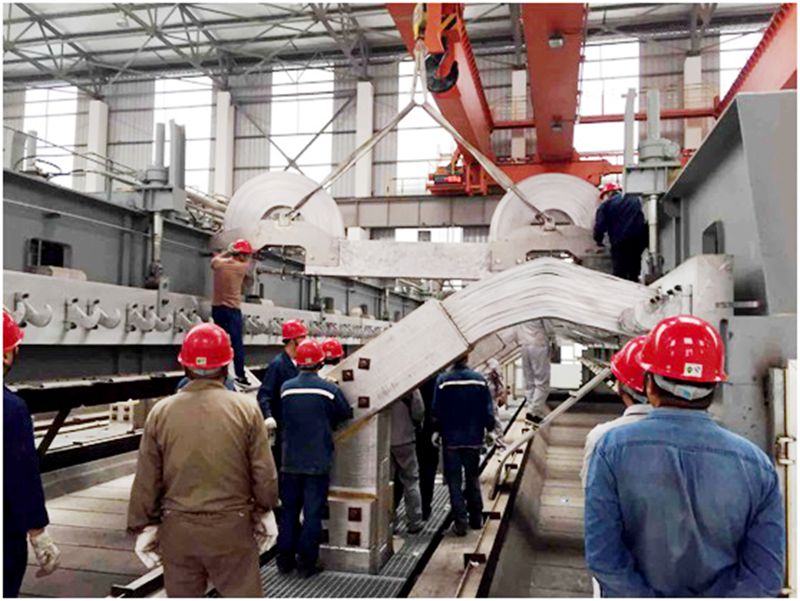上午9時整,隨著分公司生產(chǎn)技術(shù)部副主任王立平同志一聲令下,現(xiàn)場實操演練正式開始。在生產(chǎn)廠家指導(dǎo)下,電解一車間、電解二車間、檢修車間積極行動,各負其責(zé),通力配合。95分,工藝車隊托運進電端應(yīng)急短路母線進入三通道,各車間人員按照指揮拆卸托運小車緊固螺栓,拆除301#3#4#立柱母線風(fēng)格網(wǎng),天車配合吊裝短路母線就位,電解、檢修人員緊密配合,對工位、安裝卡具、緊固卡具螺栓。925分,進電端短路母線下部安裝完成。按照應(yīng)急母線操作規(guī)程,940分,當進電端短路母線上部安裝完成時,整套進電端短路母線已全部安裝到位。
