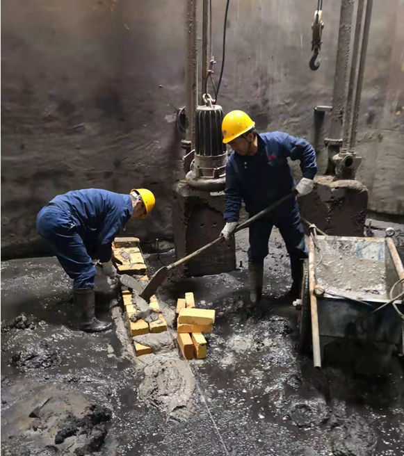 10月初,污水調(diào)節(jié)池改造工程在空壓污水班班長任延峰的帶領(lǐng)下,王文慶、岳剛、何祥等同志實(shí)施改造。他們利用僅有的手推車,不畏艱難,將磚和水泥吊運(yùn)到8米多深的水池。池下光線差,空氣封閉,潮濕,排水期間又逢連陰雨,又為改造工程增添了難度和強(qiáng)度,他們?nèi)淌苡倌嗌l(fā)的臭味和濕冷潮氣的侵襲,一磚一磚嚴(yán)密壘砌,拉緊線,對(duì)平縫,保證墻體平直通順。近一個(gè)月的時(shí)間,硬是在池底筑起了一道高1米,長30米的淤泥圍擋墻。調(diào)節(jié)池具備了沉淀功能,達(dá)到環(huán)保綠色生產(chǎn)要求及節(jié)能循環(huán)再利用的效果,被職工們稱為“效率”墻。