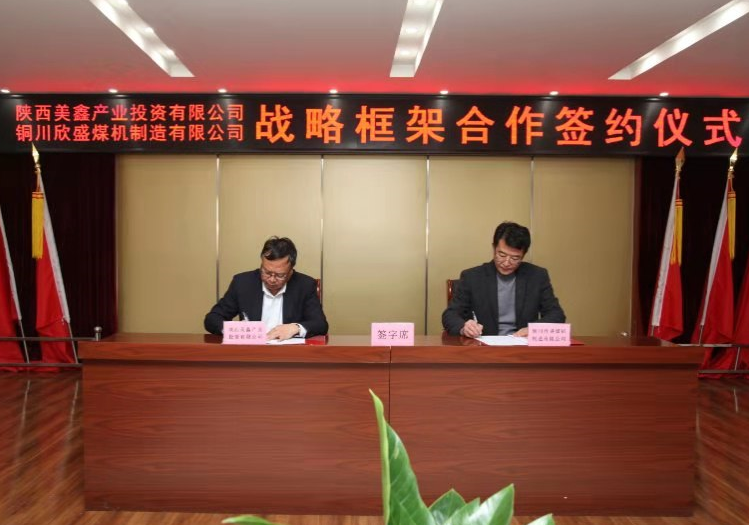 11月21日15點(diǎn)30分,陜西美鑫產(chǎn)業(yè)投資有限公司與銅川欣盛煤機(jī)制造有限公司簽訂戰(zhàn)略合作框架協(xié)議。美鑫公司副總經(jīng)理許敏與銅川欣盛煤機(jī)黨委負(fù)責(zé)人、經(jīng)理常忠甫代表雙方簽約。