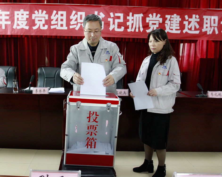會上,發(fā)放測評表對各黨組織書記抓黨建述職評議進行年度考核測評。