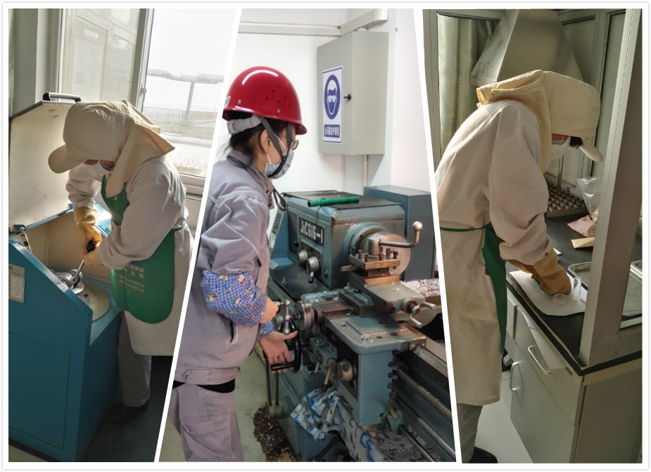 光譜分析組是隨生產(chǎn)車間三班倒的,她們不僅要克服生物鐘紊亂給身體造成的損害,還要承擔(dān)繁重的工作量。車間各生產(chǎn)線最少生產(chǎn)3種產(chǎn)品的鋁樣,這就意味著一天內(nèi)她們最少要對(duì)3種鋁樣進(jìn)行全項(xiàng)分析。你看,一旦進(jìn)入工作崗位,她們就馬不停蹄的忙開了:車樣、做樣、分析、寫報(bào)告、統(tǒng)計(jì)、出報(bào)告……熟練地操作著每一項(xiàng)流程。一個(gè)不起眼的做樣工序就經(jīng)常搞得她們滿身灰塵、滿頭汗水,常常是5個(gè)多小時(shí)的車床前站立操作,再經(jīng)過準(zhǔn)確分析,各車間生產(chǎn)的鋁樣結(jié)果才能準(zhǔn)確檢測(cè)出來。她們細(xì)心做著手頭的工作,忘記了言語(yǔ)、忘記了勞累、也忘記了時(shí)間,每天分析出來的200多個(gè)銀白色的鋁樣就是她們的戰(zhàn)利品。全副武裝下,汗水和灰塵是她們特殊的“妝容”。長(zhǎng)時(shí)間站立和久坐的輪替,讓她們個(gè)個(gè)腰酸腿痛,但沒有人抱怨,有責(zé)任有擔(dān)當(dāng),做好本職工作才是硬道理。