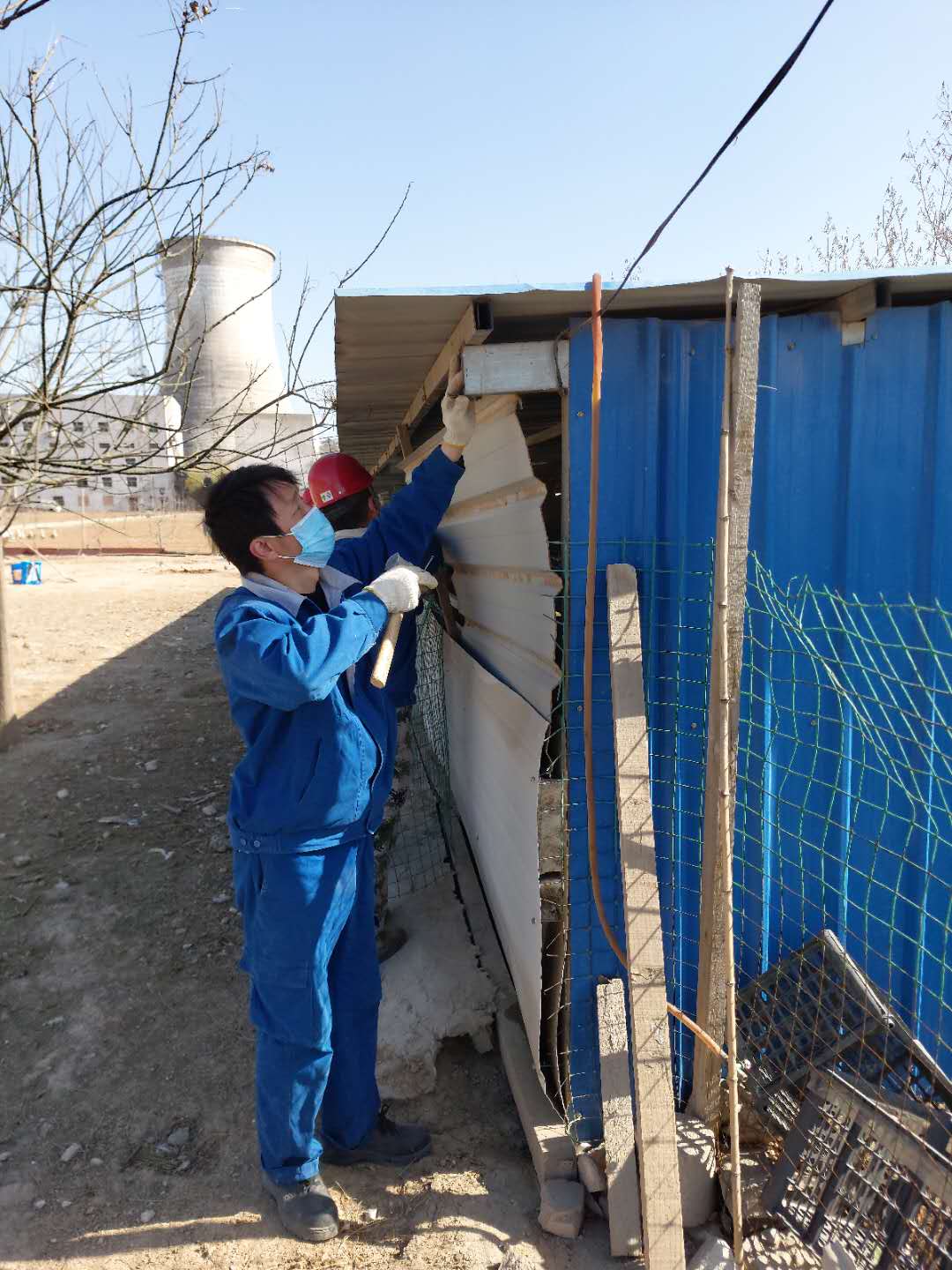 大家分工協(xié)作,從考慮雞舍的實(shí)用性及封閉性出發(fā),維修班的師傅們負(fù)責(zé)雞舍的整修;環(huán)衛(wèi)車(chē)隊(duì)和餐廳的幾個(gè)“全能手”負(fù)責(zé)為散養(yǎng)的雞、鵝搭建避暑涼棚;其余人員將雞舍內(nèi)的雞糞清理出來(lái),撒至菜地,增加生態(tài)農(nóng)場(chǎng)有機(jī)肥。