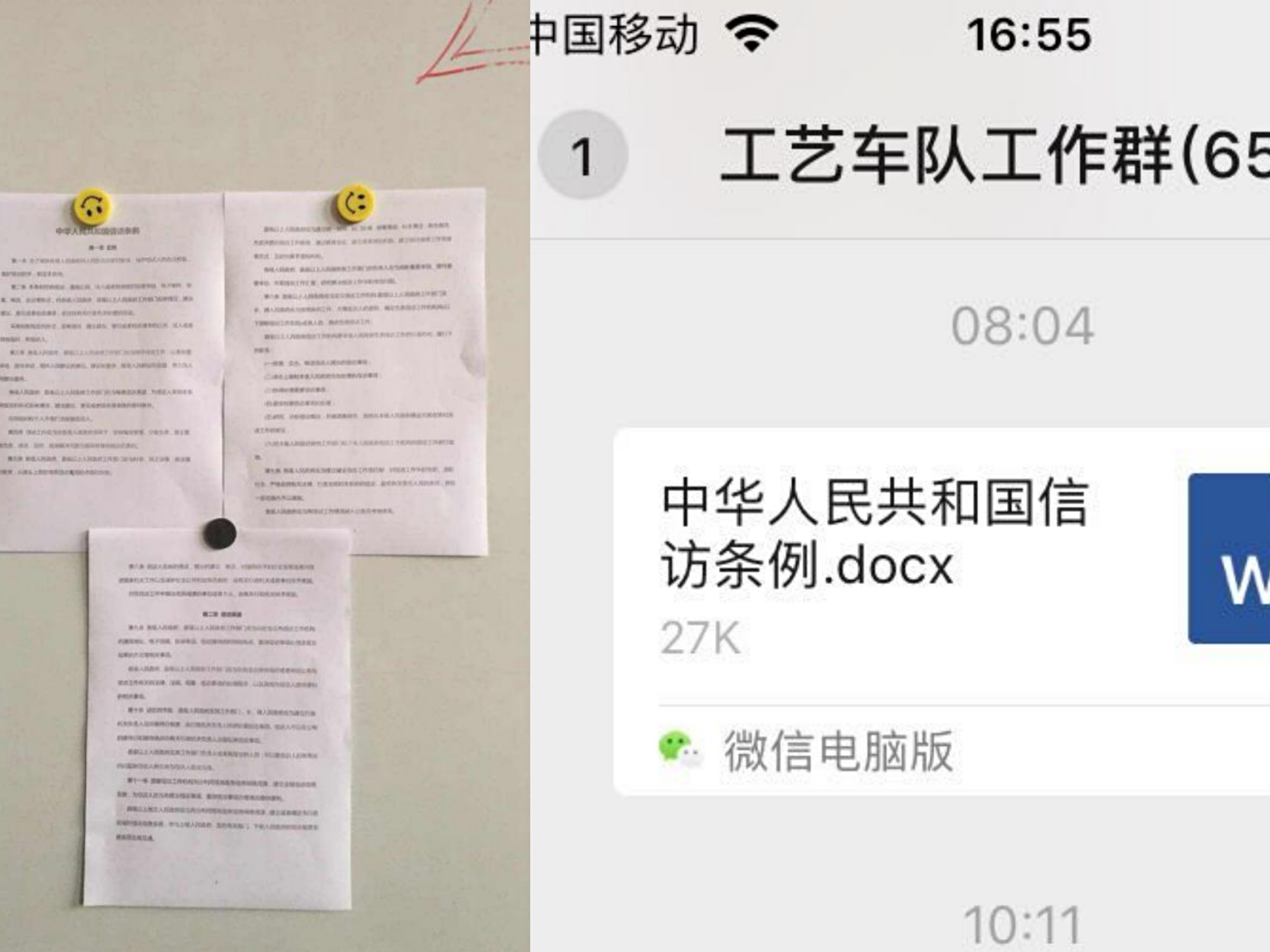 為了使職工能夠更好地了解與熟悉信訪條例,各車間通過多種形式進(jìn)行宣傳學(xué)習(xí):班組集中學(xué)習(xí);微信群、QQ群轉(zhuǎn)發(fā)學(xué)習(xí)文件;在車間公示欄內(nèi)張貼《信訪條例》等,在職工中掀起了學(xué)習(xí)條例的熱潮。