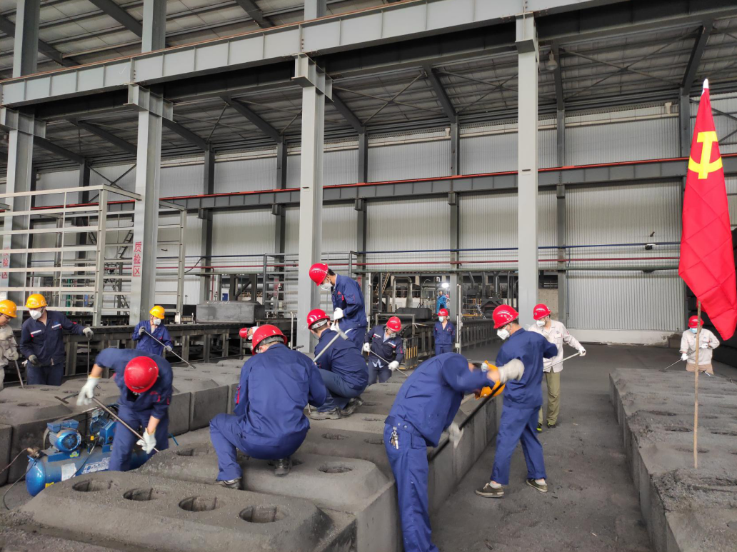 為充分發(fā)揮黨員先鋒模范作用,弘揚奉獻精神,近日,陽極分公司為解決焙燒陽極熟塊填充料粘結(jié)嚴重、外觀清理速度慢、影響生產(chǎn)進度的問題,陽極分公司黨總支結(jié)合生產(chǎn)實際,組織開展了陽極熟塊清焦義務(wù)勞動主題黨日活動;顒幼詮7月21日至24日歷時四天,共計102名黨員干部、管理人員參與了此次活動。 活動中,各支部黨員職工積極踴躍、爭先恐后,按照分工任務(wù)計劃和清焦要求,大家分工協(xié)作、相互配合,對陽極熟塊表面粘接的焦粒及炭碗進行了清理,勞動現(xiàn)場熱火朝天,一片繁忙。經(jīng)過四天的奮戰(zhàn),共清理陽極熟塊208塊,極大的緩解了焙燒塊清焦難題,有效保障焙燒車間生產(chǎn)速度和任務(wù)量。 通過此次活動的開展,充分發(fā)揮了廣大黨員勇于擔(dān)當(dāng)、甘于奉獻的精神,進一步增強了黨組織的凝聚力和戰(zhàn)斗力,展示了陽極分公司黨員職工團結(jié)一致的良好風(fēng)貌。 |