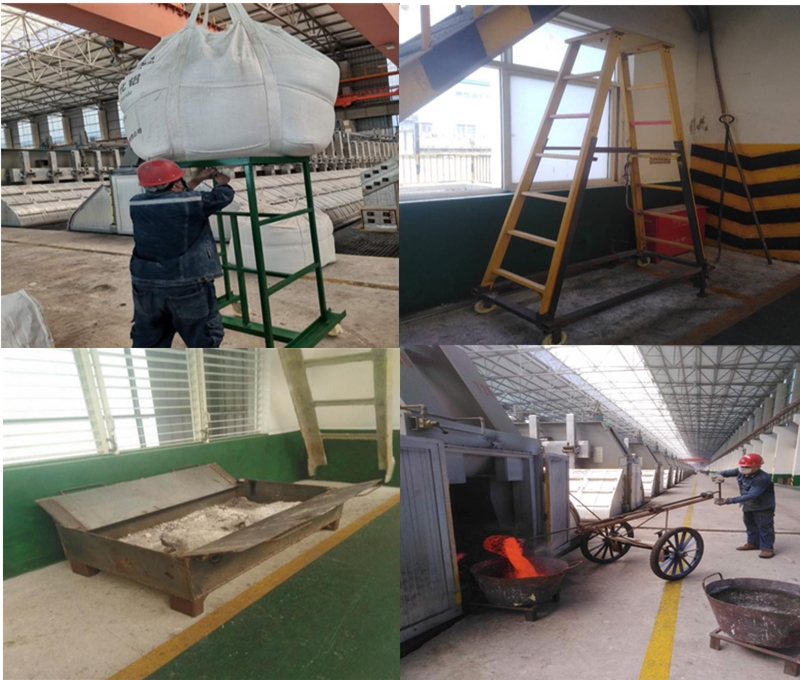 隨著“小改小造”工作的持續(xù)開展,電解二車間從生產(chǎn)中發(fā)現(xiàn)問題,從問題中尋找辦法,對結(jié)構(gòu)不合理、性能有缺陷的工器具積極進(jìn)行加工、改造,將其不斷完善,使改造后的工器具更加安全、高效、便捷,受到了電解操作工的歡迎和好評。 維修梯車通過改造,兩側(cè)梯腿支撐架加裝長度為兩米左右的角鐵固定梯身,底部四周用5mm方形鋼管焊接固定,受力面增加,支撐力加強(qiáng),梯身不易變形,底部兩側(cè)同時焊接固定地腳螺栓,使梯子可以牢牢的固定在原地,大大增強(qiáng)維修人員在高處作業(yè)時的安全系數(shù)。 活動抓斗箱通過改造,將尺寸由以前1.8mx2.0m改為現(xiàn)在1.0mx1.8m,在外形尺寸上節(jié)省一半的材料,增加活動插板,兩邊用頂絲焊接固定,成本降低的同時,徹底解決了墻邊狹小空間抓斗箱放置問題及現(xiàn)場換極時熱物料和陽極吊塊的存放問題。 新設(shè)計的氟化鋁入口支撐架,是由5mm方管焊接鋼結(jié)構(gòu)支撐,在天車加裝氟化鋁時,能夠有效起到支撐作用,防止吊裝時包帶發(fā)生斷裂,造成人員傷害的危險。 不斷更新完成第三代電解質(zhì)提取車改造加工,現(xiàn)已投入使用。相比一、二代,第三代在經(jīng)過改良后更加實(shí)用。在原設(shè)計基礎(chǔ)之上加裝升降螺桿,可升降20公分操作范圍,并實(shí)現(xiàn)雙手控車和提取電解質(zhì)同時進(jìn)行,動作合并,步驟簡化,工作效率更為快捷。 持續(xù)推進(jìn)對電解槽門扇門軸改造。截止8月底已改造完成了187塊門扇門軸。改造前使用的門軸材質(zhì)均為鋁制,容易變形和損壞,改造后的鐵質(zhì)門軸在實(shí)際應(yīng)用中結(jié)實(shí)、耐用,且返修率極低。 一個個改造成果,從根本上解決物料存放、人員安全、材質(zhì)易損、操作費(fèi)時費(fèi)力等現(xiàn)象,經(jīng)過一段時間的生產(chǎn)使用,收效良好,得到了操作工人的一致認(rèn)可。下一步,電解二車間還將保持勤思考,出新招的工作作風(fēng),“小改小造”持續(xù)輸出,努力實(shí)現(xiàn)降本增效。 |