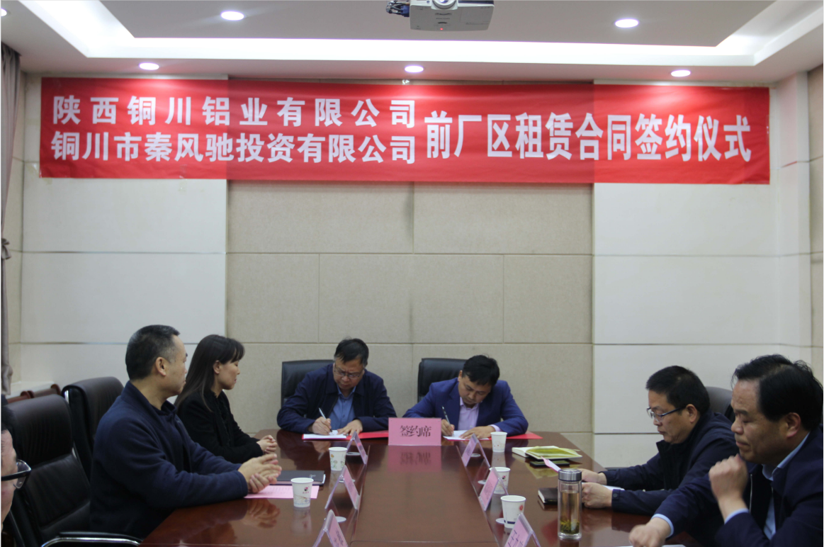 413日,陜西美鑫產業(yè)投資有限公司、銅川市秦風馳投資有限公司就銅川鋁業(yè)有限公司前廠區(qū)租賃合作,在印臺區(qū)政府舉行租賃簽約儀式。陜西美鑫公司副總經(jīng)理許敏,印臺區(qū)區(qū)委常委、副區(qū)長王九鳴,銅川市秦風馳投資有限公司執(zhí)行董事兼經(jīng)理王金峰出席會議,陜西美鑫公司各相關職能部門、印臺區(qū)政府相關部門及銅川市秦風馳投資有限公司相關人員共同見證了簽約儀式。儀式由印臺區(qū)順金工業(yè)園區(qū)辦公室主任李強主持。