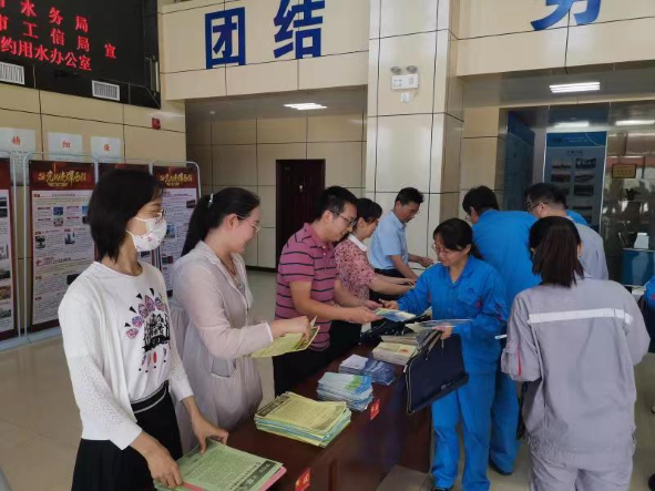 陽極分公司結合2021年全國節(jié)能宣傳周和全國低碳日的活動主題,以推進生態(tài)文明建設為主線,以動員大家參與節(jié)能減排為重點,普及技能低碳知識,樹立勤儉節(jié)約理念。通過辦公樓門前電子屏,展示“節(jié)能減排你我出力 綠色城市萬家受益”宣傳標語,在各車間張貼的節(jié)能宣傳海報等形式,廣泛動員全體職工參與節(jié)能減排。 作為消耗能源資源,產生碳排放的主體,錦陽電廠積極響應國家綠色節(jié)能、低碳減排的政策,利用全國節(jié)能宣傳周,在水資源保護與利用上做文章,邀請銅川市水務局到廠進行節(jié)能宣傳,通過設置宣傳展位、發(fā)放節(jié)水節(jié)能宣傳冊和現場講解等方式,對銅川市用水取水、水資源情況做詳細解說,向職工宣傳節(jié)約用水、低碳生活、節(jié)能環(huán)保的科普知識,增強職工節(jié)能減排意識。