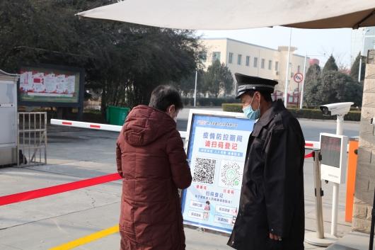 “您好!請您佩戴好口罩并出示行程碼和健康碼!惫緳C關(guān)大門口,銅鋁留守處安全環(huán)保治安管理部趙建軍正在查驗來訪人員的行程碼和健康碼,并利用便攜式體溫測量儀為來訪人員測溫。