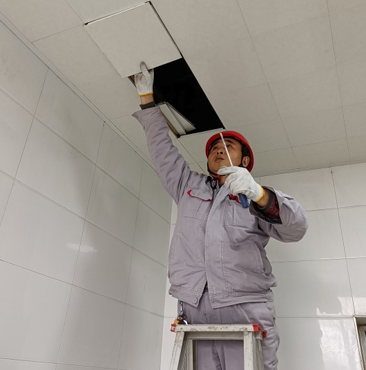 電廠辦公樓二樓和集控專業(yè)男廁下水管道由于長期出現(xiàn)堵塞現(xiàn)象,不時傳出刺鼻氣味,且衛(wèi)生間內(nèi)積累了大面積的污垢,導(dǎo)致職工無法正常使用,給職工工作帶來了較大不便和困擾。為徹底解決這一難題,兩個支部“想職工之所想,急職工之所急”,打開吊頂扣板、拆開排水管道,帶領(lǐng)部分黨員干部每層樓反復(fù)爬上爬下,一層樓一層樓排查現(xiàn)場堵塞位置,黨員領(lǐng)導(dǎo)干部發(fā)揮表率作用,克服操作空間受限、異味等困難,不怕臟、不怕累,顧不上污水侵濕衣服,最后準(zhǔn)確找到堵塞源頭,并利用皮搋子將下水管道進(jìn)行疏通。最后對衛(wèi)生間進(jìn)行了一次徹底的清理,為職工提供了干凈方便的如廁環(huán)境。