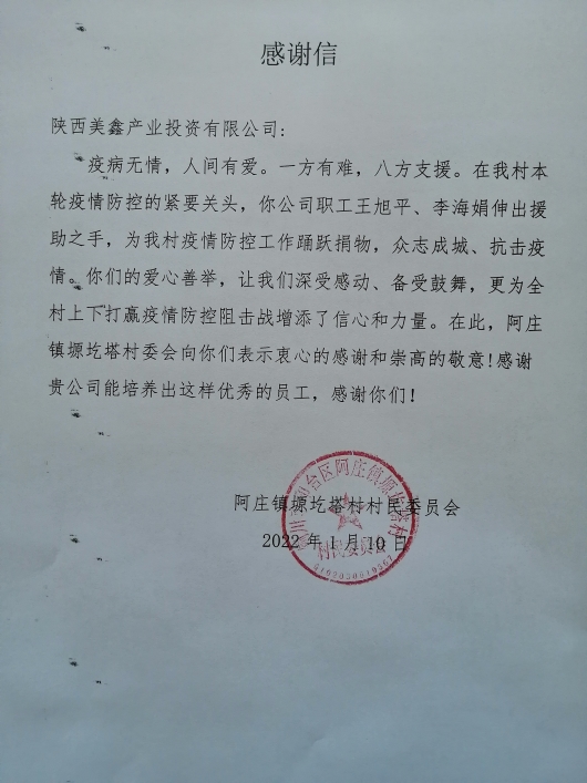在近期疫情防控緊張的形勢(shì)下,每每看到這些鄉(xiāng)村基層防疫工作人員舍小家為大家,在寒風(fēng)里堅(jiān)守崗位,為人民群眾生命健康日夜值守,尤其是農(nóng)村防疫抗疫形勢(shì)點(diǎn)多面廣、防控難度大,基層工作者工作辛苦、勞累,于是王旭平與妻子李海娟商量決定盡綿薄之力,為了疫情防控奉獻(xiàn)拳拳之心,110日,他們夫妻向印臺(tái)區(qū)阿莊鎮(zhèn)塬圪塔村委會(huì)自費(fèi)捐贈(zèng)了價(jià)值1300元的醫(yī)用口罩、酒精、方便面、牛奶、火腿腸、鍋盔等物資,為鄉(xiāng)村基層抗疫奉獻(xiàn)了愛心,表達(dá)了他們對(duì)奮戰(zhàn)在鄉(xiāng)村一線防疫人員的敬意。