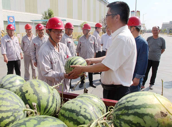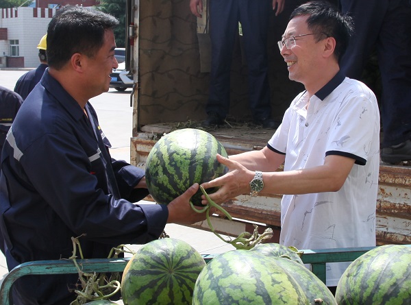 炎炎夏日,酷暑難耐。近日來,持續(xù)的高溫天氣考驗(yàn)著堅(jiān)守在生產(chǎn)一線的職工,7月1日上午,公司黨委副書記李書平,公司工會(huì)主席包廣平、副主席池遠(yuǎn)宏及公司女工委主任馬海聆一行前往基層一線開展“送清涼”活動(dòng),將公司的關(guān)懷及時(shí)送到職工的身邊。 為持續(xù)推進(jìn)“我為群眾辦實(shí)事”實(shí)踐活動(dòng)走深走實(shí),統(tǒng)籌做好夏季安全生產(chǎn)、疫情防控和防暑降溫工作,確保職工身心健康,公司工會(huì)采購了14000余斤西瓜,為鋁鎂合金分公司、陽極分公司高溫車間的一線職工及奮戰(zhàn)在錦陽電廠重點(diǎn)項(xiàng)目的職工們送去親切問候。在“送清涼”活動(dòng)現(xiàn)場,職工們抱著一個(gè)個(gè)圓滾滾、綠油油的大西瓜,臉上樂開了花。 據(jù)悉,公司工會(huì)將持續(xù)深入開展“送清涼”活動(dòng),真心實(shí)意為職工群眾辦好事、辦實(shí)事、解難事,著力提升廣大職工獲得感、幸福感、歸屬感,為譜寫公司高質(zhì)量發(fā)展新篇章做出更大的貢獻(xiàn)。 |