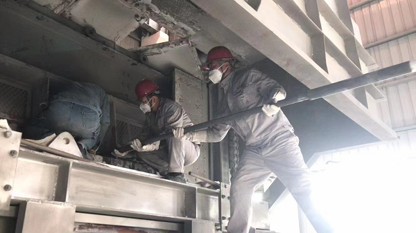 鋁鎂合金分公司檢修車間檢修二班承擔(dān)著鋁鎂合金供料車間、鑄造車間、電解槽控系統(tǒng)大小設(shè)備的維護(hù)、檢修任務(wù)。連續(xù)高溫天氣的“炙熱模式”使車間的鋼筋廠房變成了“大蒸爐”。在這樣的條件下,要確保每臺(tái)設(shè)備良好運(yùn)行,就更得細(xì)化工作、強(qiáng)化責(zé)任,緊繃“安全弦”。 8月31日下午4:50分,在大家即將結(jié)束忙碌了一天的工作準(zhǔn)備交接班時(shí),檢修二班接到在崗職工延遲下班的通知。由于2號(hào)混合爐爐溫低于650攝氏度,經(jīng)現(xiàn)場(chǎng)確認(rèn)需要進(jìn)行硅碳棒更換作業(yè),只見他們熟練的整理工器具、穿戴勞保,迅速趕到現(xiàn)場(chǎng)與鑄造工密切配合,斷電、拉警戒線、搭建工作平臺(tái)……他們?cè)趬|著木板的爐門排煙罩內(nèi)工作了近三個(gè)小時(shí),將一根根硅碳棒用5米的角鐵架送入爐膛,汗水浸濕了他們的全身,油污沾滿了他們的雙手,廠房周圍的設(shè)備轟鳴聲干擾不到他們,爐里散發(fā)的滾滾熱浪趕不走他們,因?yàn)樗麄?/span>心中有著無限力量。 高溫下⼀幕幕忙碌的身影讓我肅然起敬,這就是三伏天維修工的日?s影,他們揮汗如雨,堅(jiān)守崗位,不言退縮,在自己平凡的崗位上接受著高溫的考驗(yàn)和洗禮,為車間的安全運(yùn)轉(zhuǎn)保駕護(hù)航,用汗水和智慧詮釋著愛崗敬業(yè)的責(zé)任與擔(dān)當(dāng)。 |