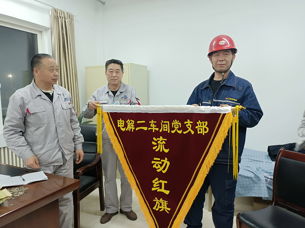 “經(jīng)過車間綜合評比,六工區(qū)各項成績的綜合排名位列車間三個工區(qū)前列,這個季度的‘優(yōu)秀工區(qū)’流動紅旗繼續(xù)頒發(fā)給六工區(qū),其他工區(qū)要以六工區(qū)為榜樣,加強對標交流,汲取成功經(jīng)驗,迎頭趕上。”鋁鎂合金分公司電解二車間主任靳祥印在季度“優(yōu)秀工區(qū)”流動紅旗評比和頒獎儀式上說道。