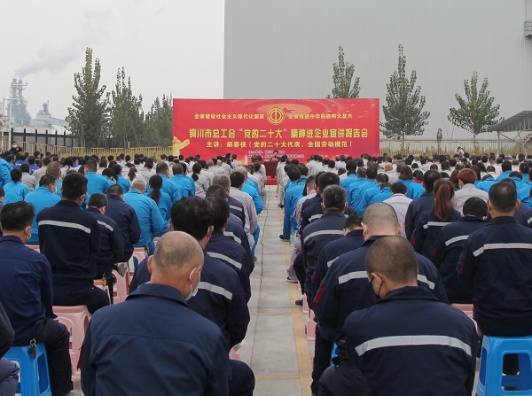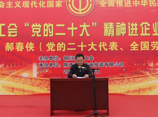 公司黨委書記、董事長高曉兵致辭,對銅川市總工會黨組書記、常務(wù)副主席何建平和郝春俠代表的到來表示熱烈的歡迎和衷心的感謝。他表示,黨的十八大以來,陜西美鑫公司始終堅(jiān)持以高質(zhì)量發(fā)展為主題,充分發(fā)揮國有企業(yè)在構(gòu)建“大循環(huán)、雙循環(huán)”發(fā)展新格局中應(yīng)有作用,積極踐行社會責(zé)任和企業(yè)擔(dān)當(dāng),為地方經(jīng)濟(jì)作出了積極貢獻(xiàn)。公司將倍加珍惜此次報(bào)告會帶來的高層次、高水平的實(shí)踐輔導(dǎo),以黨的二十大精神為指引,堅(jiān)決貫徹黨中央決策部署,擼起袖子加油干、風(fēng)雨無阻向前行,進(jìn)一步把循環(huán)經(jīng)濟(jì)產(chǎn)業(yè)鏈的藍(lán)圖繪就的更大更美好,以高質(zhì)量發(fā)展的實(shí)效來檢驗(yàn)學(xué)習(xí)成果。