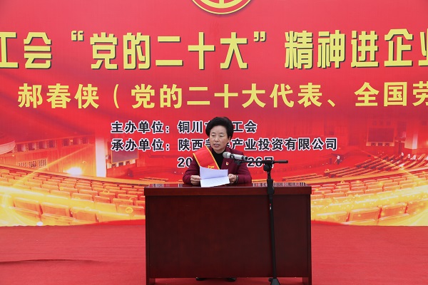 10月26日,公司邀請黨的二十大代表、全國勞模、銅川市耀州區(qū)石柱鎮(zhèn)西古莊村黨支部書記、村委會主任郝春俠進(jìn)企業(yè)宣講黨的二十大精神。