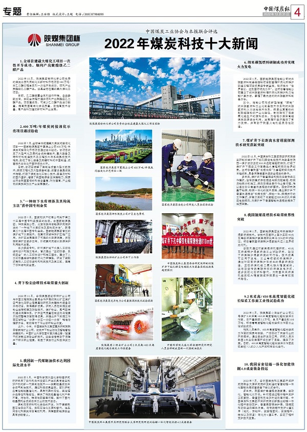陜煤集團5條新聞入選2022年煤炭行業(yè)科技企業(yè)十大新聞