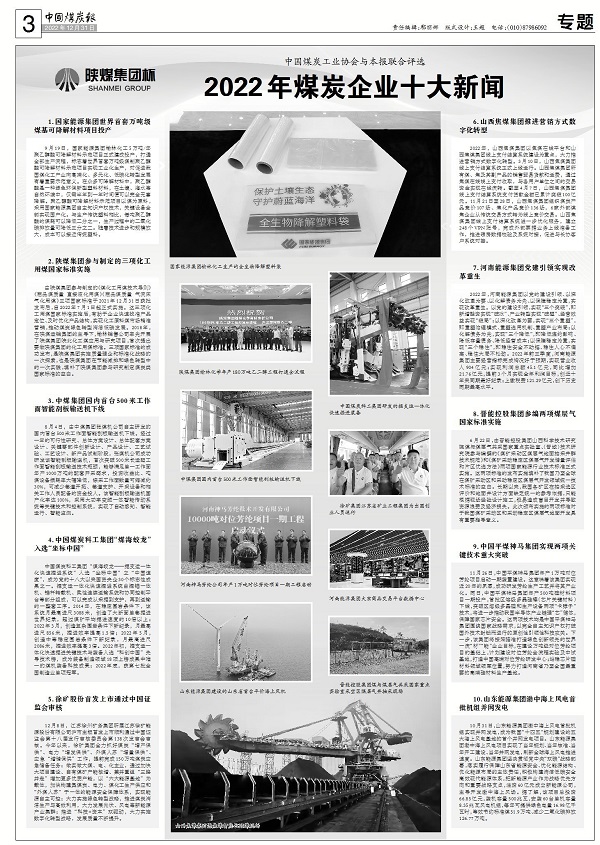 20221231日,中國煤炭工業(yè)協(xié)會與中國煤炭報聯(lián)合評選并發(fā)布2022年煤炭行業(yè)十大新聞、煤炭科技十大新聞、煤炭企業(yè)十大新聞,陜煤集團多條新聞獲評入選,展現(xiàn)了2022年企業(yè)發(fā)展多個領(lǐng)域的成績。