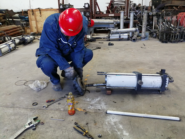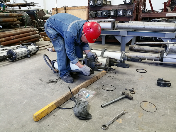 電解槽打殼氣缸是預(yù)焙陽極電解槽打殼下料裝置的專用設(shè)備,打殼氣缸在疏通火眼的同時(shí),能夠有效保證氧化鋁粉、氟化鋁通過火眼順利進(jìn)入電解槽鋁液內(nèi),從而達(dá)到物料平衡,避免因物料短缺產(chǎn)生突發(fā)效應(yīng)干擾電解槽正常運(yùn)行。由于打殼氣缸長期在高溫狀態(tài)下工作,氣缸密封圈極易老化破損,不僅會(huì)導(dǎo)致氣缸在打殼疏通火眼時(shí)綿軟無力,而且極易進(jìn)入異物卡死活塞使氣缸無法正常工作,嚴(yán)重的甚至?xí)霈F(xiàn)缸筒或者活塞拉傷,造成打殼氣缸整體報(bào)廢從而增加生產(chǎn)成本。針對此類情況,車間立即行動(dòng),對達(dá)到報(bào)廢標(biāo)準(zhǔn)的氣缸缸體進(jìn)行分檢歸類,從中挑選出可以使用的缸體和活塞進(jìn)行重新搭配組合,再通過切割、焊接將其改造成出鋁抬包C管套筒。改造后,出鋁抬包C管更換率明顯下降。截至目前,電解一車間通過打殼氣缸修舊利廢一項(xiàng)就可節(jié)省資金約4.8萬元。