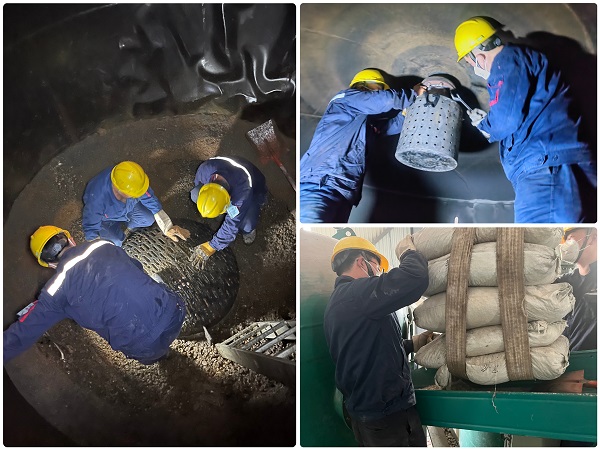 近日,陽極分公司動力車間污水處理站運行工在對1#污水處理系統(tǒng)過濾器進行反洗時,發(fā)現(xiàn)部分填料從反洗口異常排出,經(jīng)檢修人員現(xiàn)場檢查,確定是布水器故障導(dǎo)致的跑料問題。 為及時消除故障,車間立即制定搶修方案,抽調(diào)精干力量迅速展開搶修。搶修過程中,檢修人員辦理好受限空間工作票,做好通風(fēng)、檢測等安全保障措施,隨后一邊清理罐內(nèi)殘料、拆裝布水器、緊固濾帽,一邊調(diào)運新的填料準備重新填裝,由于罐內(nèi)空間狹小、悶熱,要求作業(yè)人員20分鐘進行輪換,經(jīng)過車間上下共同努力,拆裝、填料工作順利完成,搶修任務(wù)圓滿結(jié)束,經(jīng)調(diào)試,過濾器出水狀態(tài)良好。 此次設(shè)備搶修工作,有效檢驗了車間受限空間搶修作業(yè)的組織管理能力,增強了檢修人員應(yīng)對突發(fā)事件的搶修工作經(jīng)驗,確保了分公司污水處理設(shè)備長期穩(wěn)定運行。 |