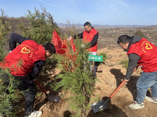 春風(fēng)吹新綠,植樹正當(dāng)時(shí)。在全國(guó)第46個(gè)植樹節(jié)到來之際,公司積極開展“依法盡責(zé)植樹 共享森林銅川”植樹活動(dòng),進(jìn)一步提升公司廣大干部職工綠色發(fā)展意識(shí)和環(huán)境保護(hù)意識(shí),以實(shí)際行動(dòng)傳遞綠色力量、走好綠色之路。此次活動(dòng)由后勤服務(wù)中心牽頭組織,公司廣大團(tuán)員青年志愿者積極參與。 3月12日一大早,大家身穿紅馬甲,拿起工具,全副武裝前往印臺(tái)區(qū)史家河“曙光林栽植點(diǎn)”。在植樹現(xiàn)場(chǎng),大家緊密配合、分工協(xié)作,揮锨鏟土、定點(diǎn)挖坑、放苗回填、澆水培植,每個(gè)環(huán)節(jié)都井然有序。此次活動(dòng)計(jì)劃栽種柏樹苗500余株。當(dāng)日新栽種的樹苗在春日下迎風(fēng)挺立,為初春的大地增添了一分生機(jī)。 通過活動(dòng),進(jìn)一步增強(qiáng)了廣大干部職工的生態(tài)意識(shí)、環(huán)保意識(shí)、文明意識(shí)。大家紛紛表示,在今后的工作生活中將牢固樹立“綠水青山就是金山銀山”理念,持續(xù)開展綠色環(huán)保活動(dòng),爭(zhēng)做生態(tài)文明的踐行者、倡導(dǎo)者和推動(dòng)者。 |