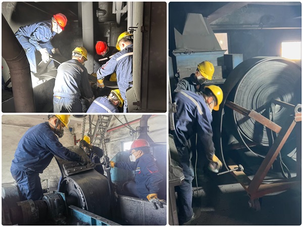 陽(yáng)極分公司成型車(chē)間返回料#1斗式提升機(jī)從階段性試運(yùn)行到持續(xù)生產(chǎn)已有9年之久,連接部位積料和銹蝕問(wèn)題逐漸顯現(xiàn),主動(dòng)輥滾筒及皮帶磨損程度也已達(dá)到更換標(biāo)準(zhǔn)。近期,結(jié)合工作實(shí)際和設(shè)備檢修計(jì)劃,車(chē)間決定對(duì)#1斗式提升機(jī)進(jìn)行全面維修。 此次返回料斗式提升機(jī)維修強(qiáng)度高、難度大,分公司相關(guān)職能部門(mén)及車(chē)間高度重視,成立檢維修工作小組,商討制定維修方案和應(yīng)急預(yù)案,隨著備品備件的逐步到廠,維修工作如期展開(kāi)。維修過(guò)程中,檢修班組和生產(chǎn)班組協(xié)同配合,從拆卸固定螺栓、清理積累物料到對(duì)拆下部件進(jìn)行標(biāo)記分類(lèi)擺放、備品備件有序更換安裝,維修人員精心操作、規(guī)范作業(yè),確保每道工序有條不紊、高效完成。特別是在手動(dòng)盤(pán)車(chē)更換80米皮帶過(guò)程中,檢修人員結(jié)合現(xiàn)場(chǎng)實(shí)際自主設(shè)計(jì)制作適用工具,有效推進(jìn)了更換進(jìn)度。經(jīng)過(guò)為期5天的不懈努力,于4月12日按計(jì)劃完成維修更換工作,設(shè)備運(yùn)行調(diào)試正常后將投入生產(chǎn)。 此次檢修工作,不僅徹底消缺了該設(shè)備存在的問(wèn)題,也有效保證了后期車(chē)間生產(chǎn)工作的持續(xù)穩(wěn)定。今后工作中,成型車(chē)間將持續(xù)做好設(shè)備隱患排查治理,確保設(shè)備安全高效穩(wěn)定運(yùn)行。 |
