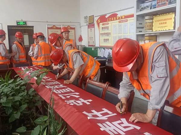 檢修車間傳達學習了公司“安全生產(chǎn)月”活動方案,強調(diào)要以活動促安全、保安全,持續(xù)推動安全生產(chǎn)水平提升和安全生產(chǎn)重點工作落實。廣大職工紛紛在主題橫幅上簽下自己的名字,并進行了安全宣誓。