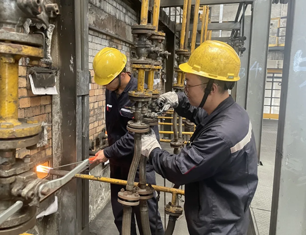 此次8#罐式爐點(diǎn)火烘爐,分公司相關(guān)部門、車間結(jié)合以往工作經(jīng)驗(yàn)重新修訂完善啟動(dòng)方案及應(yīng)急預(yù)案,安排專人對(duì)天然氣管網(wǎng)及上下游生產(chǎn)設(shè)備進(jìn)行精細(xì)檢查,同時(shí)組織調(diào)溫崗位工對(duì)啟動(dòng)方案和操作規(guī)程進(jìn)行學(xué)習(xí)演練。在啟動(dòng)過程中,作業(yè)人員配合井然有序,嚴(yán)格按照啟動(dòng)方案要求依照火道順序依次點(diǎn)燃40個(gè)天然氣噴嘴,并及時(shí)與動(dòng)力車間工作人員聯(lián)絡(luò)溝通,確保烘爐過程負(fù)壓平穩(wěn)。點(diǎn)火啟動(dòng)后,煅燒車間安排值班人員及生產(chǎn)骨干進(jìn)行24小時(shí)巡視檢查,實(shí)時(shí)監(jiān)測(cè)爐體彈簧壓力、爐體膨脹、火道溫度、負(fù)壓等指標(biāo),保證烘爐工作安全平穩(wěn)運(yùn)行。整個(gè)烘爐過程計(jì)劃持續(xù)62天。