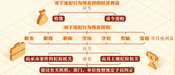 《中國共產黨紀律處分條例》對于違紀行為所獲利益如何處理作出了規(guī)定。主要分為兩種情況—— 對于違紀行為所獲得的經濟利益,應當收繳或者責令退賠。對于主動上交的違紀所得和經濟損失賠償,應當予以接收,并按照規(guī)定收繳或者返還有關單位、個人。 依照《中國共產黨紀律處分條例》《中華人民共和國公職人員政務處分法》及相關指導性案例,在追究黨紀責任時,處置涉案財物的主要方式為“收繳”和“責令退賠”;在追究監(jiān)察責任時,處置涉案財物的主要方式為“沒收”“追繳”和“責令退賠”。其中,追究黨紀責任時對違紀所得予以“收繳”,相當于追究監(jiān)察責任時對違法所得予以“沒收”和“追繳”。 “收繳”通常針對的是實施違紀違法行為所獲得的財物及其孳息收益,“責令退賠”通常針對的是違反規(guī)定揮霍浪費國有資產,如公款吃喝、公款旅游以及違反規(guī)定亂罰款、亂收費獲得的財物等,責令被審查調查人將違紀違法所得的財物予以歸還,財物已經被消耗、毀損的,應當用與之價值相當?shù)呢斘镉枰再r償,責令退賠的財物直接退賠原所有人或原持有人,無法退賠的上繳國庫。 對于違紀行為所獲得的職務、職級、職稱、學歷、學位、獎勵、資格等其他利益,應當由承辦案件的紀檢機關或者由其上級紀檢機關建議有關組織、部門、單位按照規(guī)定予以糾正。 這里的“有關組織、部門、單位”,主要是指對違紀行為所獲得的職務、職級、職稱、學歷、學位、獎勵、資格等其他利益有權予以糾正的組織、部門、單位。 同時,結合《條例》第三十七條、第三十八條規(guī)定,對違紀后下落不明的黨員,黨組織作出處分決定前死亡的黨員,或者死亡之后發(fā)現(xiàn)曾有嚴重違紀行為的黨員,經調查確屬其實施違紀行為獲得的利益,也應當依照上述規(guī)定處理。 |