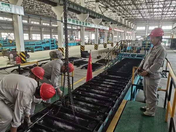 為進一步提升設(shè)備性能、提高產(chǎn)品質(zhì)量,從7月上旬開始,鋁鎂合金分公司鑄造車間對3號鑄錠機進行全面升級,重點更換磨損嚴重的鏈條及已報廢的鑄模。