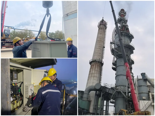 經(jīng)維修人員細致檢查,發(fā)現(xiàn)1#脫硫塔高頻電源變壓器一次側輸入接線柱損壞,由于接線柱與變壓器高頻接線柜為一體式設計,需要進行整體更換處理。但高頻電源接線柜在脫硫塔頂,離地面約60余米,面對此難題,車間立即溝通相關部門聯(lián)系吊車,同時研究制定搶修工作方案、協(xié)調拉運新高頻接線柜。待吊車及備件到位后,分公司分管設備副經(jīng)理現(xiàn)場指揮,管理和技術人員協(xié)調配合,作業(yè)人員按照操作規(guī)程及搶修方案對高頻電源接線柜進行拆裝。在吊車及現(xiàn)場人員的通力配合下,經(jīng)過一下午的搶修作業(yè),經(jīng)反復檢查調試正常后設備啟動運行。