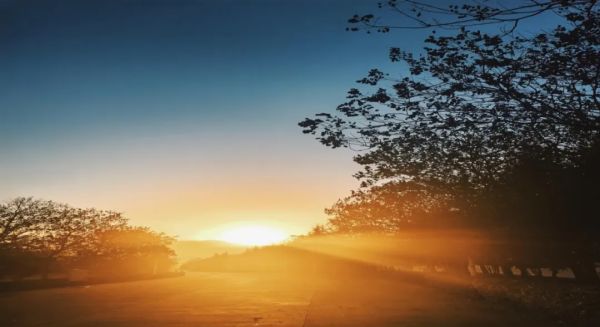 清晨來(lái)到單位,站在路的盡頭朝遠(yuǎn)方望去,太陽(yáng)掙脫地平線(xiàn)的束縛,先是露出幾縷光霞,接著是一條火紅的弧線(xiàn),像一盤(pán)晶瑩剔透的和田玉,從那遙遠(yuǎn)的東方緩緩的升起,照亮整個(gè)天際,也照亮了“你”,在光線(xiàn)的映襯下,“你”像是披上了一層橙黃色戰(zhàn)衣,充滿(mǎn)無(wú)限生機(jī)。