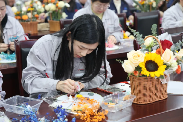 為慶祝第115個“三八”國際勞動婦女節(jié),3月7日下午,公司女工委開展“‘陜’耀巾幗志·建功譜新篇”主題系列活動之“插花拾趣 悅享生活”、“巧手生花,制扇‘至美’”團扇DIY活動,來自各單位約60余名女職工參加活動。公司黨委副書記、工會主席楊亞科,公司工會副主席張曉進,公司黨委宣傳部副部長、女工委主任劉芳婧,公司工會辦公室主任王庚出席活動。 活動伊始,為讓大家感受由文字構筑的精神殿堂,“玫瑰書香”女職工閱讀分享活動獲獎的優(yōu)秀選手再次上臺演繹,她們以真摯的情感和獨特的視角誦讀經(jīng)典篇章、分享心靈感悟,讓精彩回放,讓在場眾人深切感受到閱讀賦予女性的精神力量。隨后,現(xiàn)場為“玫瑰書香”女職工閱讀活動獲獎人員進行頒獎。 “插花拾趣 悅享生活”插花活動邀請專業(yè)花藝師現(xiàn)場為女工們講解了插花的基本技巧和花語寓意,引導大家根據(jù)自己的喜好和審美,將一束束鮮花巧妙地搭配起來。香檳玫瑰的浪漫、向日葵的朝氣、康乃馨的溫馨……一朵朵鮮花在女工們的巧手下,仿佛被賦予了生命,變成了一件件獨一無二的藝術品。大家一邊插花,一邊交流心得,現(xiàn)場歡聲笑語不斷,氣氛熱烈而融洽。 “巧手生花,制扇‘至美’”團扇DIY活動,更是讓女工們親身體驗到了傳統(tǒng)手工制作的魅力。大家跟著制作視頻認真學習團扇的制作工藝和繪制技巧,從干花、裁剪、粘貼到裝飾,每一個制作細節(jié)都體現(xiàn)出大家的用心。在她們的巧手下,一把把精美的團扇在女工們的手中誕生。 通過這次活動,女工們不僅學會了插花和團扇制作等手工技藝,更重要的是在親身實踐中領略到了手工、非遺所蘊含的文化底蘊和無窮魅力。大家紛紛表示,這樣的活動既讓自己感受到了節(jié)日的喜悅和溫暖,又提升了自身的審美能力和創(chuàng)造力,未來的工作中將繼續(xù)發(fā)揚巾幗精神,以更大的決心和信心投身工作,為公司高質(zhì)量發(fā)展貢獻智慧和力量。 |