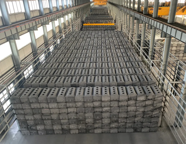各型號制品的碳碗尺寸之間存在差異,給生產造成諸多難題,分公司相關車間、部門技術人員積極探索、勇于創(chuàng)新,自主研發(fā)出獨有的填碗工具,成功化解了“1810型”代焙塊與自產塊圓紙板通用的難題。為確保代焙產品質量,生陽極裝爐前需在相鄰炭塊間預留16mm間隙使填充料充分保護炭塊,分公司經多點位、多輪次測試將炭塊間夾裝隔離欄框,此舉不僅安全高效還能徹底解決外觀裂紋、粘連塊等問題,代焙塊外觀合格率達到了99%以上。編組時由于各型號制品外觀尺寸不一,推塊液壓油缸縱橫交錯難以準確定位,分公司通過在特定區(qū)域加裝AB塊轉換開關,輕松實現(xiàn)大小制品的自如切換。因炭塊尺寸不同,多功能天車夾具收緊距離受限,夾取力度難以滿足整組炭塊重量要求,分公司通過更換夾具夾釘部件有效解決了各型號炭塊的切換問題,且夾釘制作成本低、重量輕、更換時間短,為生產任務完成提供有力保障。日前,分公司炭塊庫擁有17塊、21塊兩種規(guī)格的堆垛天車,通過更換堆垛天車夾具,新增18塊規(guī)格夾具,完全滿足自產塊、外焙塊等各種型號制品使用。