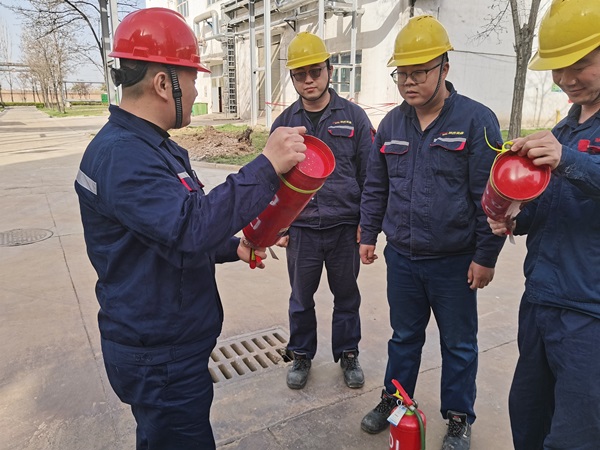 培訓環(huán)節(jié),車間安全員依據(jù)動力車間設備運轉特性與電氣線路分布,為車間員工和外委單位員工詳細講解了重點設備設施的防火性能,并就消防器材的正確使用、初期火災撲救、報警流程以及人員疏散逃生方法進行了細致示范。