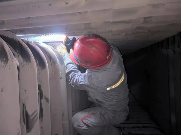 面對工期緊張、任務(wù)繁重的客觀條件,檢查團隊主動放棄休息時間,在受限空間、高溫環(huán)境等不利因素下,始終保持嚴(yán)謹(jǐn)細致的工作作風(fēng)。針對每處疑似隱患點均進行反復(fù)核查,對存在顯著磨損或潛在風(fēng)險的部位,同步開展數(shù)據(jù)記錄、位置標(biāo)識及現(xiàn)場方案制定工作。