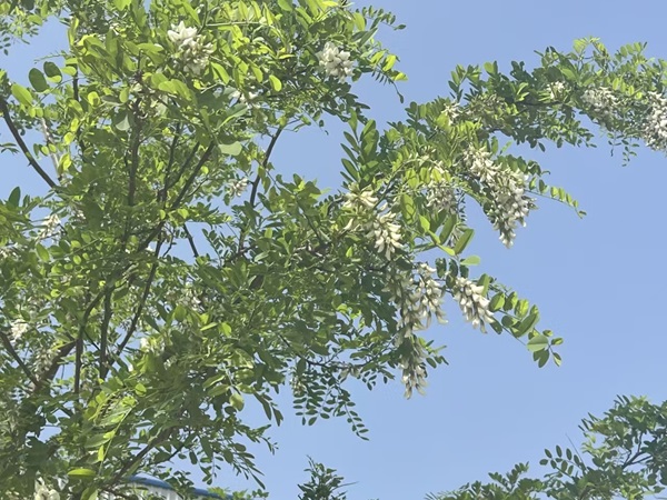后來(lái),每當(dāng)經(jīng)過(guò),我都在這里駐足片刻。櫻花的甜香與槐花的清冽在空氣里碰撞,遠(yuǎn)處的轟鳴聲仿佛都變得遙遠(yuǎn)。斑駁的樹影里,粉色花瓣鋪成地毯,而洋槐的素白花序懸垂其上,像在鋼鐵織錦上繡下的素白針腳。原來(lái)最動(dòng)人的風(fēng)景,往往藏在那些打破規(guī)則的存在里——當(dāng)櫻花的喧囂歸于平凡,這棵特立獨(dú)行的洋槐,正用沉默的綻放,為千篇一律的春天寫下注腳。