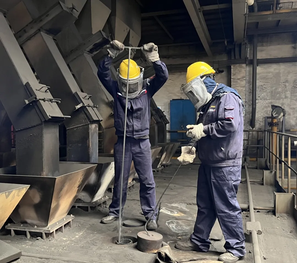精準(zhǔn)清理,工藝升級(jí)。本次清爐采用“停排保溫—內(nèi)部清理”標(biāo)準(zhǔn)化流程:煅燒工先對(duì)下料管實(shí)施插板隔離,待料面排至結(jié)焦漏出2米左右,對(duì)單個(gè)料罐進(jìn)行停排處理。作業(yè)人員使用特制鋼釬,精準(zhǔn)破除爐膛內(nèi)壁、火道間隙的頑固焦塊。創(chuàng)新之處在于將清理出的焦塊直接留存爐內(nèi),通過后續(xù)煅燒工序同步分解消耗,避免傳統(tǒng)“清焦落料”帶來的二次轉(zhuǎn)運(yùn)污染。