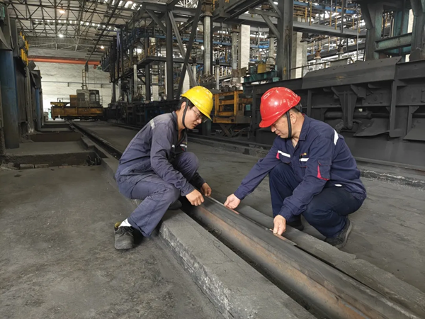 在此次技改實(shí)施過(guò)程中,組裝車(chē)間聚焦“澆鑄不停產(chǎn)、管網(wǎng)正常運(yùn)行、施工作業(yè)安全”三大核心難點(diǎn),制定全流程管控方案。針對(duì)2#殘極壓脫機(jī)等關(guān)鍵設(shè)備溜槽磨損嚴(yán)重、輸送不暢的問(wèn)題,通過(guò)調(diào)整下料口角度、加裝高分子聚乙烯耐磨襯板、增設(shè)底部支撐槽鋼立柱,減少溜槽來(lái)料沖擊力、增加槽體耐磨系數(shù)、強(qiáng)化系統(tǒng)穩(wěn)固機(jī)構(gòu),徹底解決物料堵塞與泄漏問(wèn)題,輸料效率提升顯著。軌道改造則瞄準(zhǔn)80米澆鑄車(chē)軌道變形磨損難題,按照國(guó)際標(biāo)準(zhǔn)實(shí)施軌道基礎(chǔ)加固、軌距校準(zhǔn)與連接件強(qiáng)化,采用QU100型軌道替換舊軌,同步完成澆鑄車(chē)輪體、軌道錨點(diǎn)等附加件更換和修復(fù),軌道承載能力與運(yùn)行穩(wěn)定性得到明顯提升。此外,車(chē)間利用此次技改,同步推進(jìn)P2、P6、P7等除塵器收塵管維修、清理機(jī)8#皮帶更換、增加皮帶緩沖床等自主改造項(xiàng)目,實(shí)現(xiàn)了生產(chǎn)全環(huán)節(jié)“舒筋活絡(luò)”。