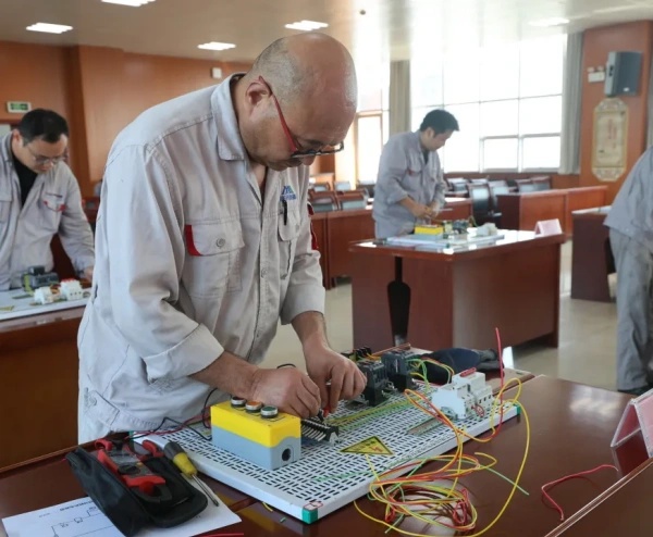 為深入貫徹落實“四賽四抓”勞動和技能競賽實施方案,公司于7月14日至15日在錦陽電廠舉辦2025年通用工種低壓電工崗位技能競賽。本次競賽以“建功‘十五五’·技能鑄輝煌”為主題,來自鋁鎂合金分公司、陽極分公司及錦陽電廠的61名選手同臺競技,通過“理論+實操”雙環(huán)節(jié)比拼,全面檢驗并提升職工技能水平。 競賽聚焦電動機連續(xù)運轉(zhuǎn)與點動控制兩大工業(yè)自動化核心技術(shù),圍繞電氣原理圖識讀、安全規(guī)范等理論內(nèi)容及主回路接線、控制回路調(diào)試等實操技能展開。理論考核側(cè)重知識儲備與識圖能力,實操環(huán)節(jié)則要求選手在50分鐘內(nèi)完成復(fù)雜電路搭建與調(diào)試,精準(zhǔn)實現(xiàn)點動控制的瞬時響應(yīng)與連續(xù)運轉(zhuǎn)的穩(wěn)定性控制。裁判組通過萬用表檢測、通電試運行等標(biāo)準(zhǔn)化流程嚴(yán)格評分,確保競賽公平公正。 比賽現(xiàn)場,選手們展現(xiàn)扎實的專業(yè)功底與應(yīng)急處置能力,從接觸器線圈自鎖到按鈕開關(guān)互鎖,每一處接線均體現(xiàn)精益求精的工匠精神。公司黨委副書記、董事、工會主席楊亞科現(xiàn)場指導(dǎo),勉勵職工“以賽促學(xué)、以賽促練”,將競賽成果轉(zhuǎn)化為實際生產(chǎn)力。此次競賽不僅搭建了技藝交流平臺,更推動了公司“技能競賽-崗位練兵-技術(shù)創(chuàng)新”三位一體培養(yǎng)體系建設(shè),為培養(yǎng)高素質(zhì)產(chǎn)業(yè)工人隊伍、推動企業(yè)高質(zhì)量發(fā)展注入新動能。 |