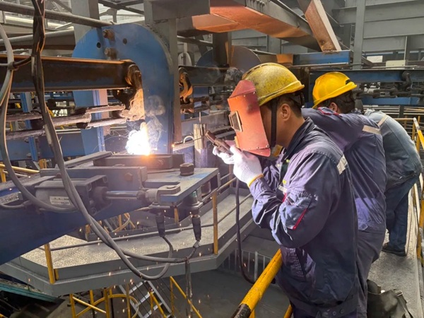 車間當(dāng)即啟動應(yīng)急搶修預(yù)案,組建搶修小組分工協(xié)作進行搶修:技術(shù)骨干精準測量軌道參數(shù),制定緊固調(diào)整方案;鉗工負責(zé)加工軌道底座校直工具;焊工承擔(dān)起切割、更換、焊接軌道的核心任務(wù)。8時25分,維修人員迅速在作業(yè)平臺展開行動,先拆除嚴重變形軌道、校直輕微變形部位,再根據(jù)軌道底座偏移角度,輪流用加力桿進行扭力校直。在軌道更換環(huán)節(jié),團隊?wèi){借專業(yè)素養(yǎng)實現(xiàn)鐵軌對接“零誤差”,焊縫焊接一氣呵成。8時50分,在使用專業(yè)工具加固所有螺栓后,懸鏈軌道故障成功排除;試運行確認各項指標正常后,9時整生產(chǎn)線全面恢復(fù)運行。