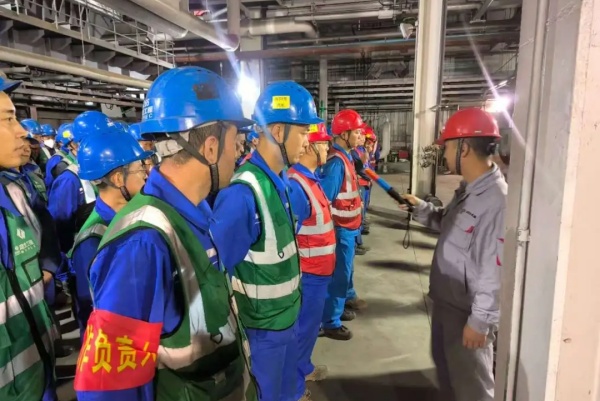 安全是檢修工作的生命線,電廠通過(guò)強(qiáng)化人員準(zhǔn)入管理與現(xiàn)場(chǎng)流程管控筑牢安全防線。組建#3機(jī)組C級(jí)檢修專(zhuān)屬安全觀察員隊(duì)伍,作為現(xiàn)場(chǎng)安全“移動(dòng)防線”,全天候巡查高空作業(yè)、臨時(shí)用電、交叉作業(yè)等關(guān)鍵區(qū)域,重點(diǎn)監(jiān)控防護(hù)措施落實(shí)與作業(yè)規(guī)范執(zhí)行情況,通過(guò)“發(fā)現(xiàn)-整改-復(fù)核”閉環(huán)機(jī)制完成38項(xiàng)隱患整改,涵蓋工具擺放、防護(hù)用具佩戴等細(xì)節(jié)問(wèn)題及警示標(biāo)識(shí)缺失、設(shè)備吊裝偏差等風(fēng)險(xiǎn)點(diǎn)。每日班前會(huì)進(jìn)行酒精檢測(cè),每項(xiàng)檢修前由技術(shù)負(fù)責(zé)人組織安全交底,通過(guò)流程文件、安全視頻直觀講解作業(yè)步驟、風(fēng)險(xiǎn)點(diǎn)及應(yīng)急措施,履行三方簽字確認(rèn)程序,確保全員明晰安全要求。